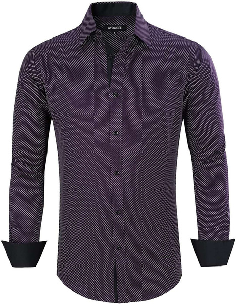AYDOGEE Men’s Dress Shirts Solid Long Sleeve Stretch Wrinkle-Free Formal Shirt Business Casual Button Down Shirts